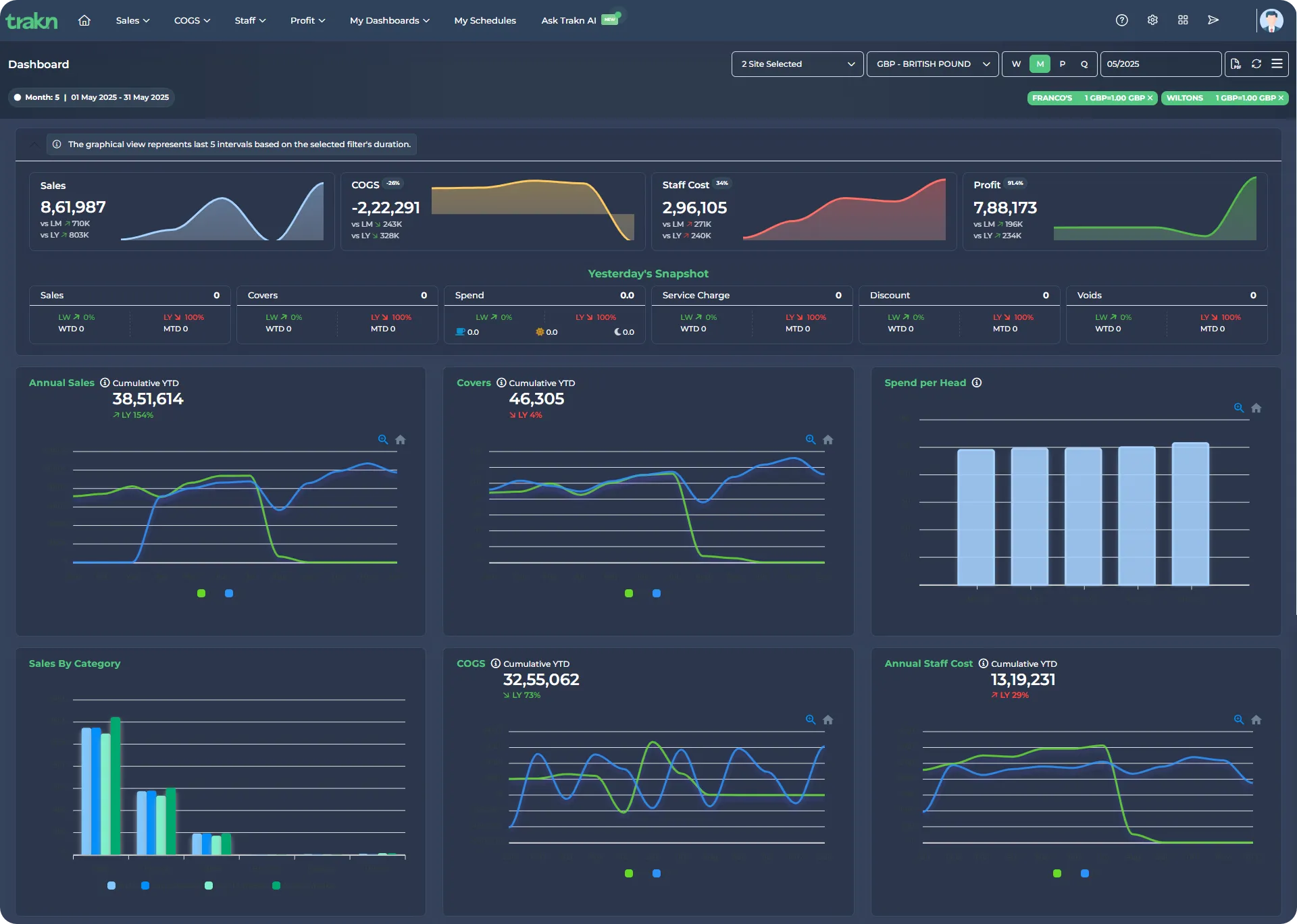 Trakn brings every piece of your hospitality operation into focus - from labour and sales to inventory and profitability. Our intuitive platform brings clarity to your revenue generators & cost drivers simplifying your financial decision-making. See where profits are made, opportunities are missed and performance can excel.